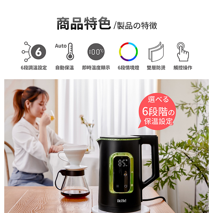 Ikiiki伊崎 1.7L智能溫控玻璃快煮壺 IK-TK4209(白)/IK-TK4210(黑)