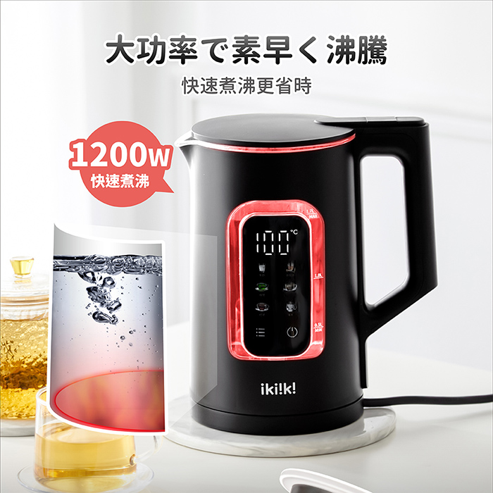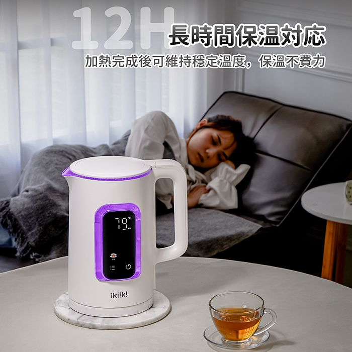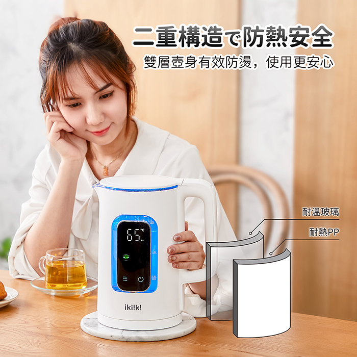 【ikiiki伊崎】1.7L智能溫控玻璃快煮壺