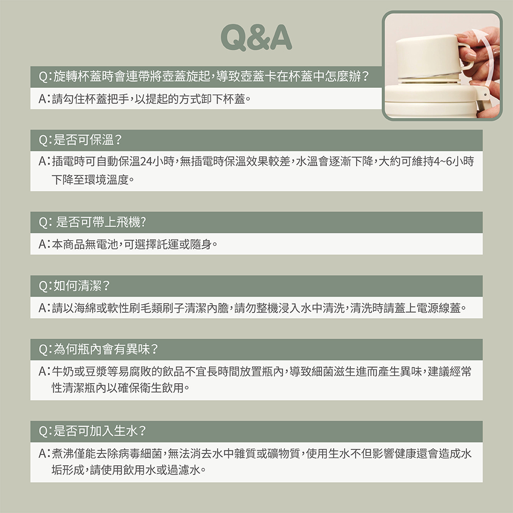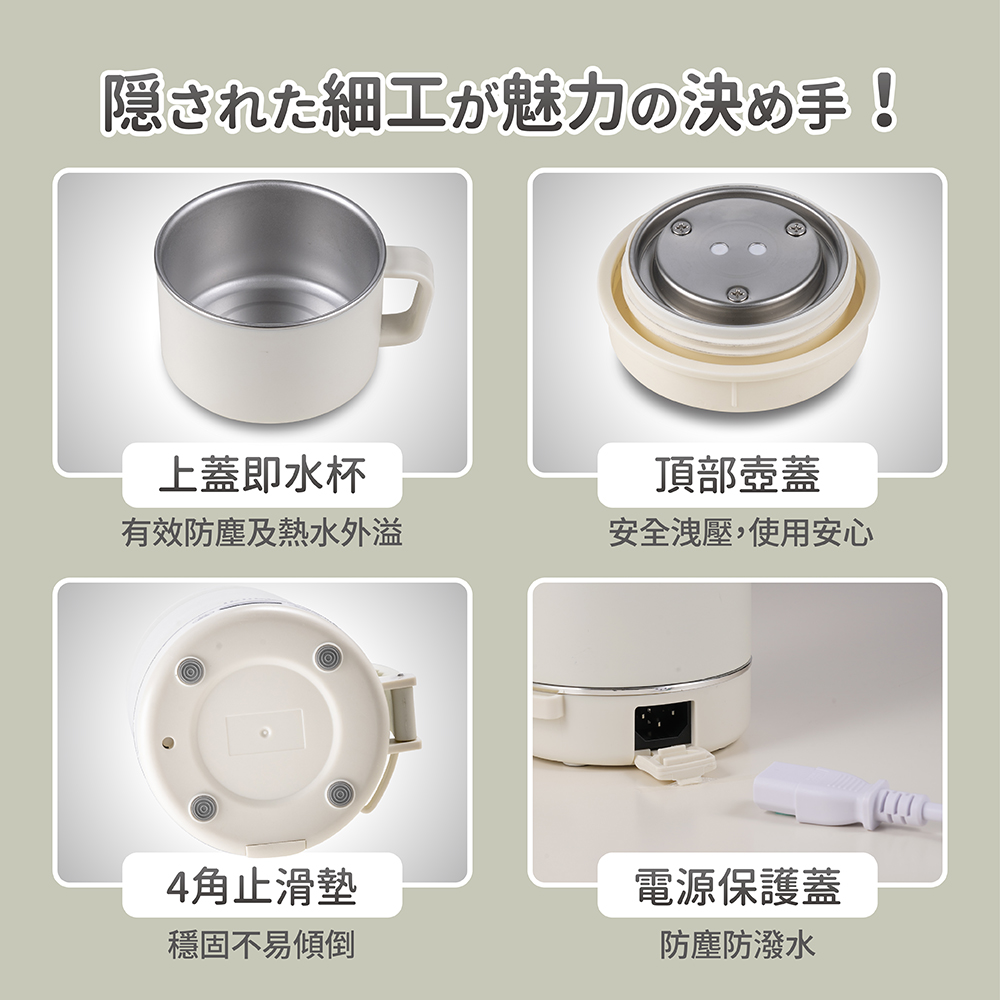 .配件:本體、壺蓋、水杯、分離式電源線、背帶