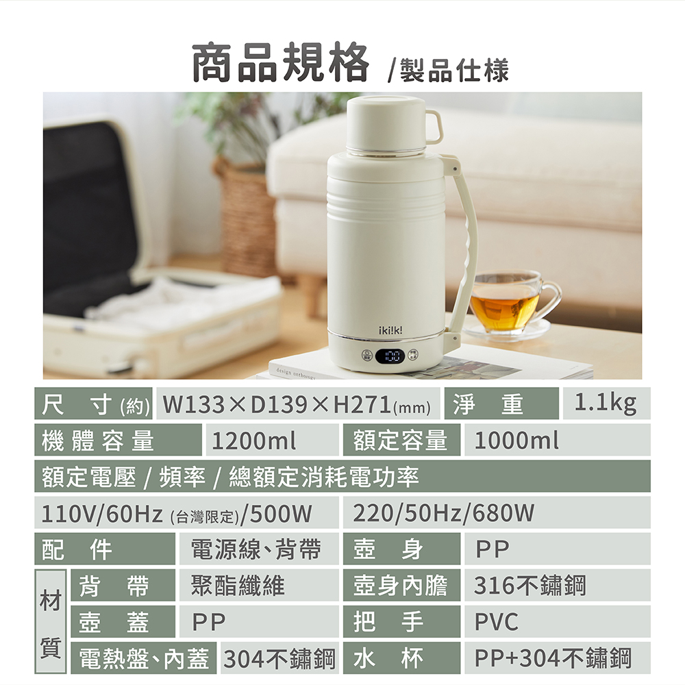【ikiiki伊崎】 國際雙電壓保溫隨行快煮壺