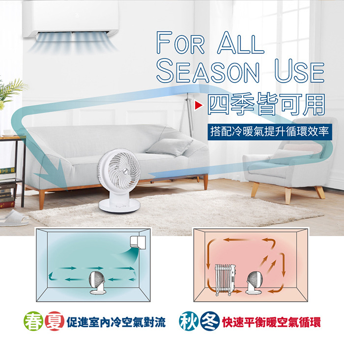 .搭配冷、暖氣提升循環效率,一年四季都適用。