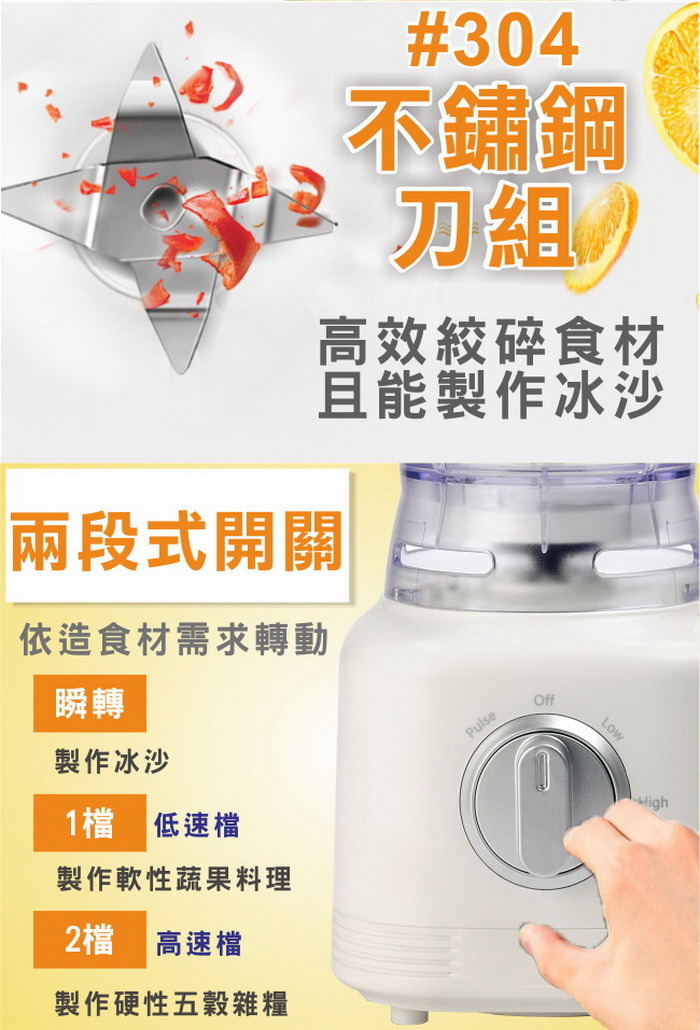 .不鏽鋼刀組,高效絞碎食材,且能製作冰沙。