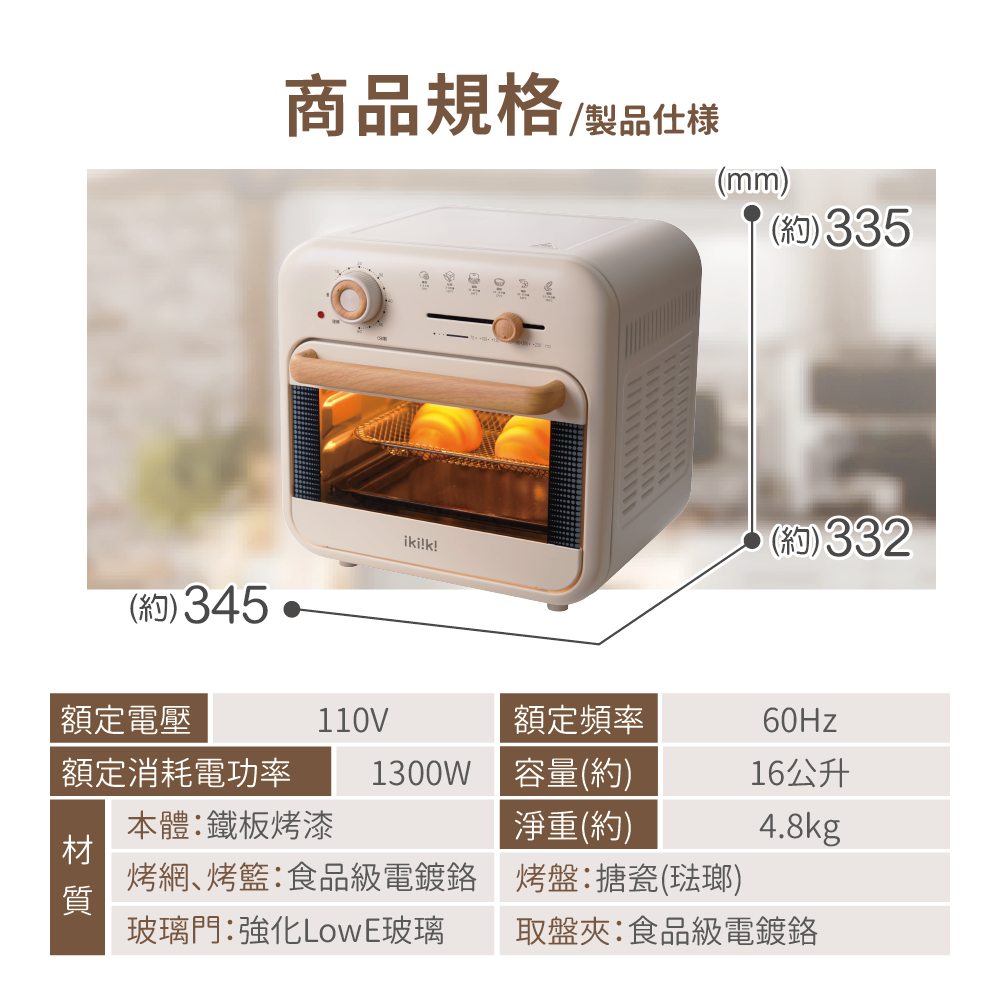 .產品尺寸/淨重: 約W345xD332xH335mm / 約4.8kg