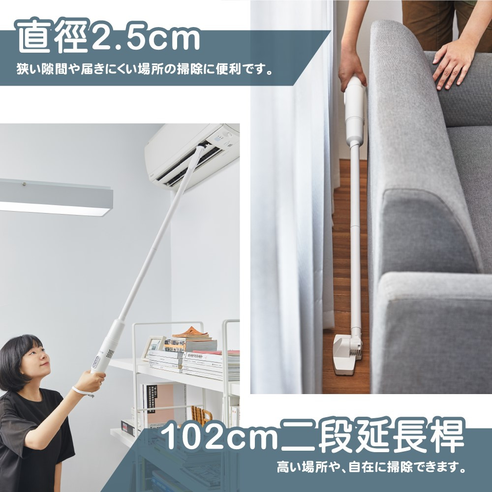 .全機總長102cm,可外接兩段式延長管,清理高處不求人。