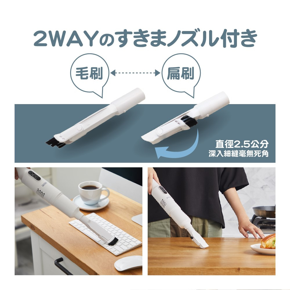 .直徑2.5cm二合一毛/扁刷,深入隙縫無死角。