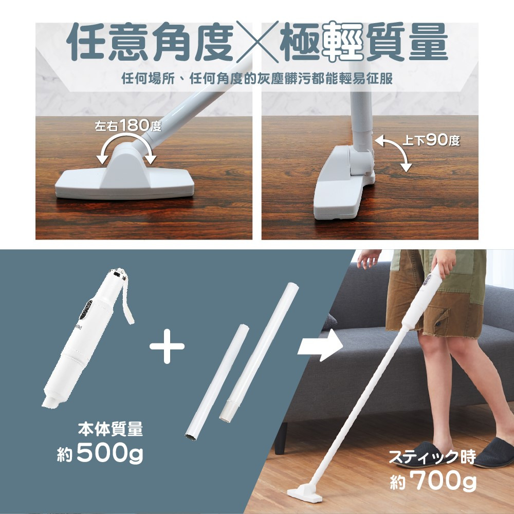 .極輕量機身500g重,單手除塵不費力。
