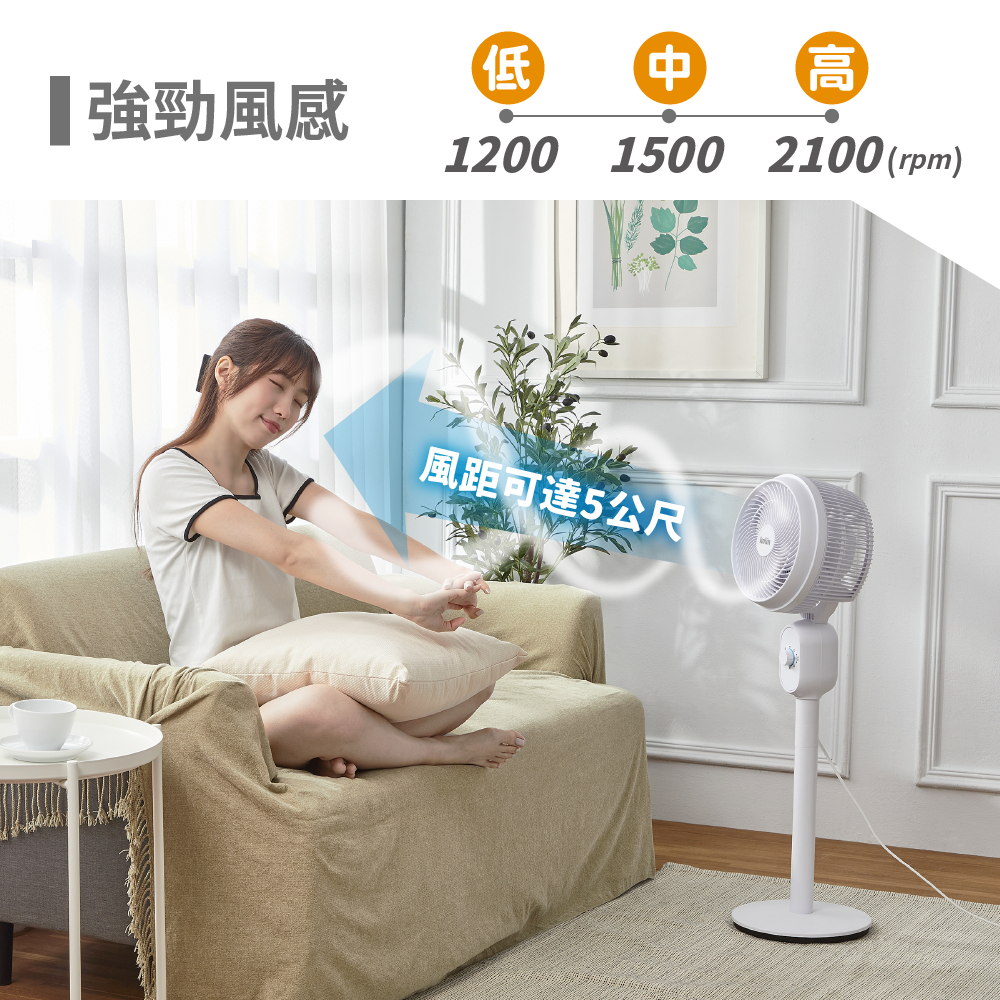 .2100Rpm強轉速,5.5m/s風速,沁涼享受