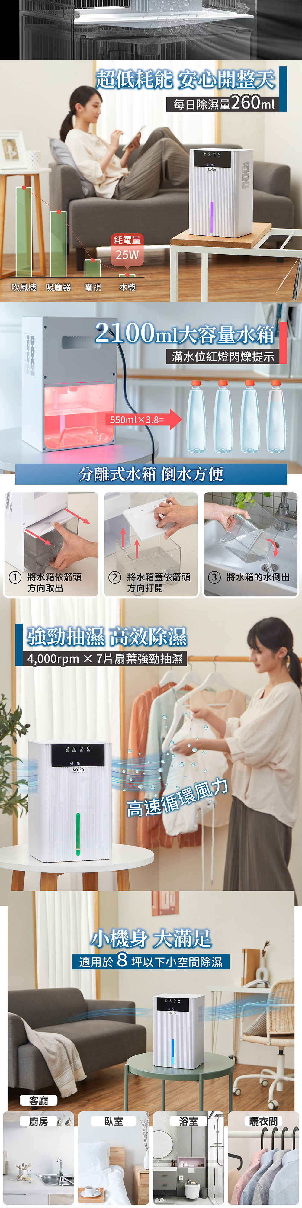 .260ml/日強效除濕力,小房間乾爽有感。
