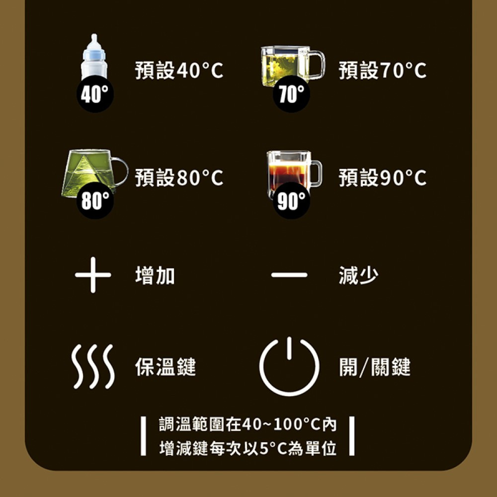 .每檔5°C 溫度微調,搭配飲品精準控制水溫。