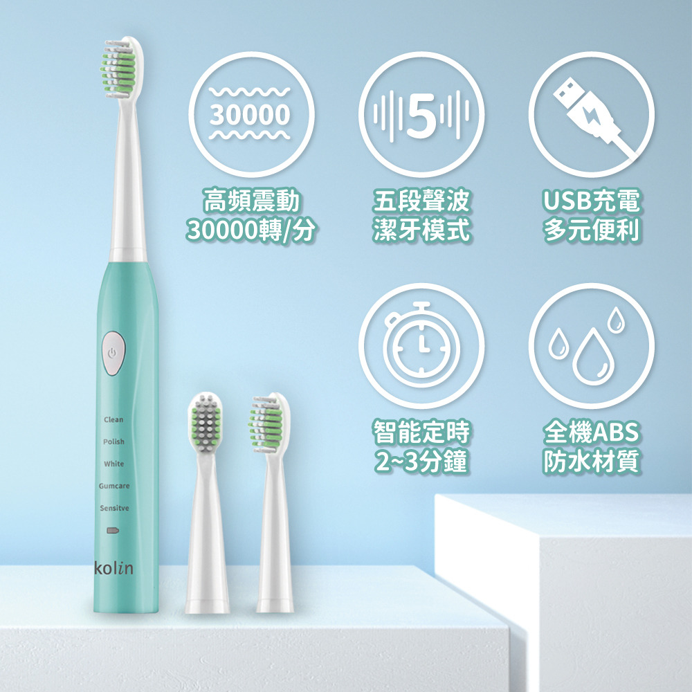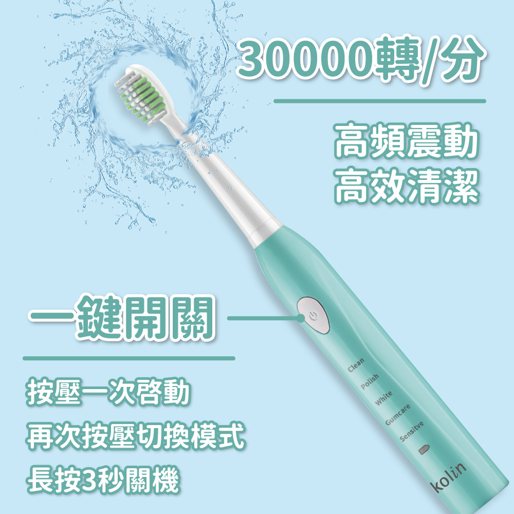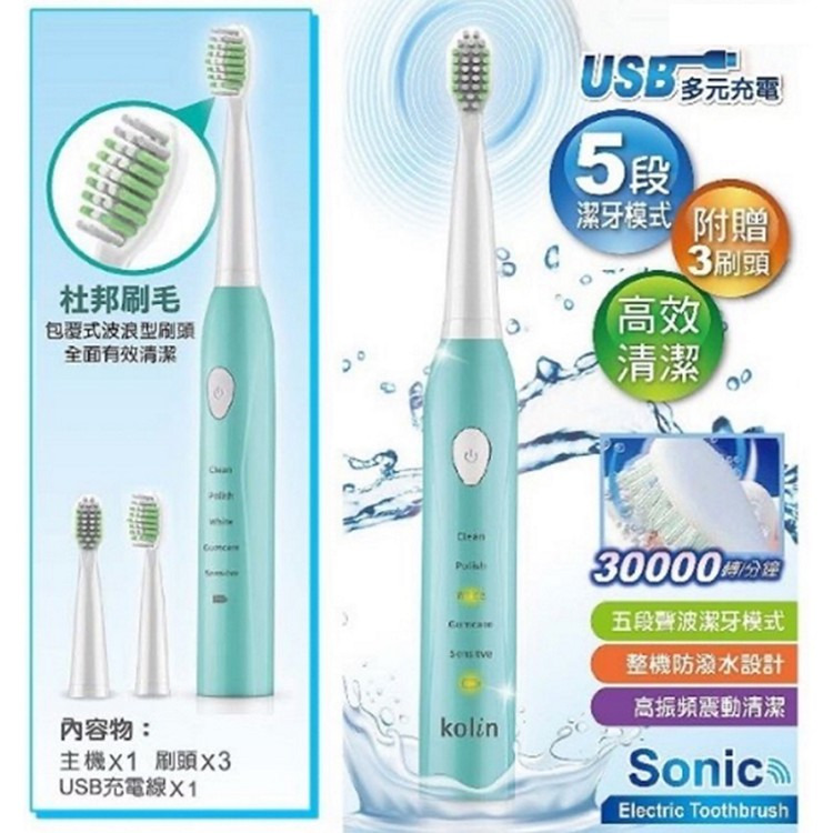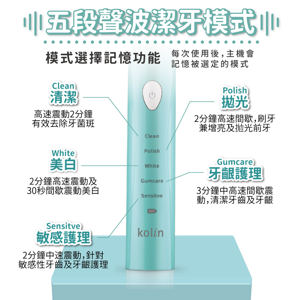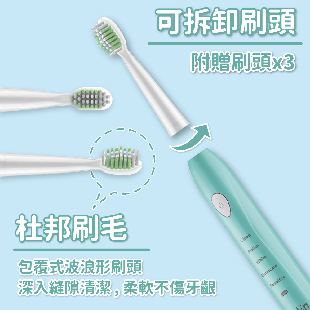 【商品特色】 .模式選擇記憶功能 .5段聲波潔牙模式 .充滿電後可使用50分鐘 .附杜邦刷頭*3 個,更換刷頭免煩惱